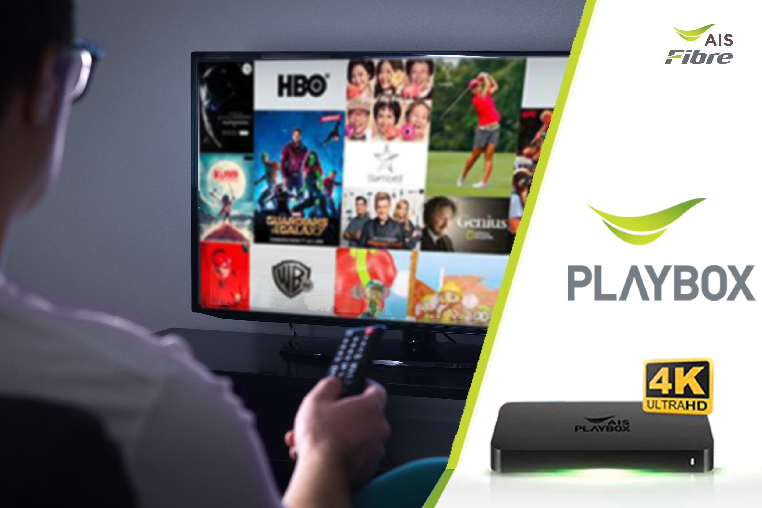 เน็ตบ้าน AIS Fibre มาพร้อม AIS Playbox ที่มี Exclusive Content พร้อมมอบประสบการณ์สุดยอดความบันเทิงระดับโลก ให้คุณสามารถรับชมหนังดี ซีรีส์ดัง ผ่าน AIS Playbox งานนี้ไม่มีตกเทรนด์