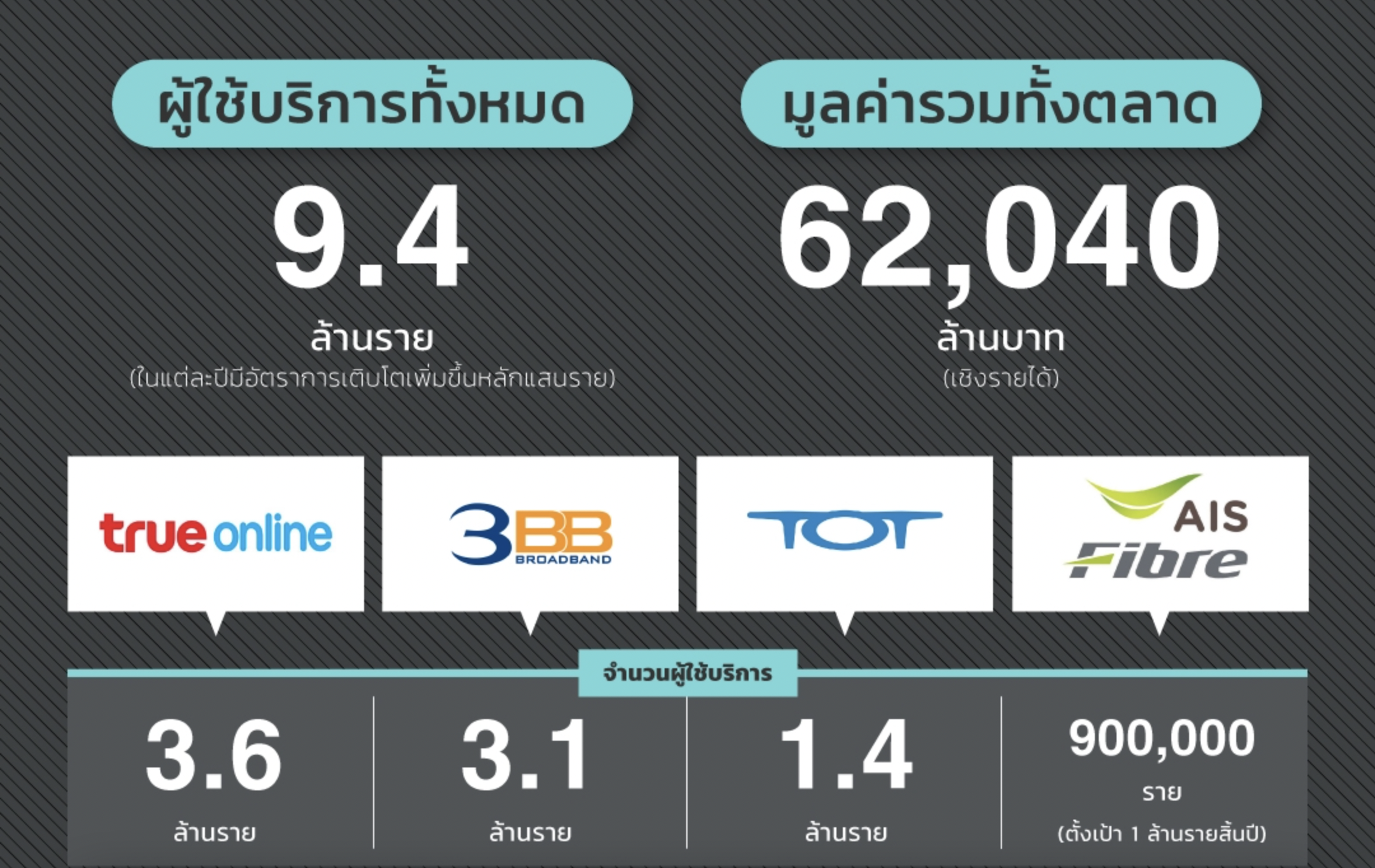 ที่น่าสนใจคือธุรกิจอินเทอร์เน็ตบ้านจะเริ่มทำกำไรให้กับผู้ให้บริการก็ต่อเมื่อมีฐานผู้ใช้งานมั่นคงเกิน 2 ล้านครัวเรือนขึ้นไป จุดนี้เองที่ยังเป็น ‘กำแพงอุปสรรค’ กั้นไม่ให้ผู้เล่นรายเล็กสามารถแหวกว่ายเข้ามาสู่ตลาดได้