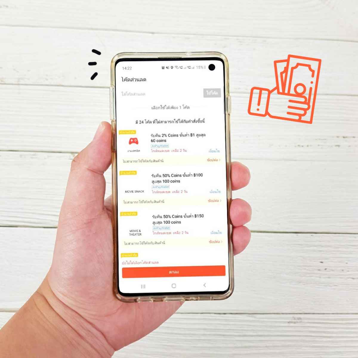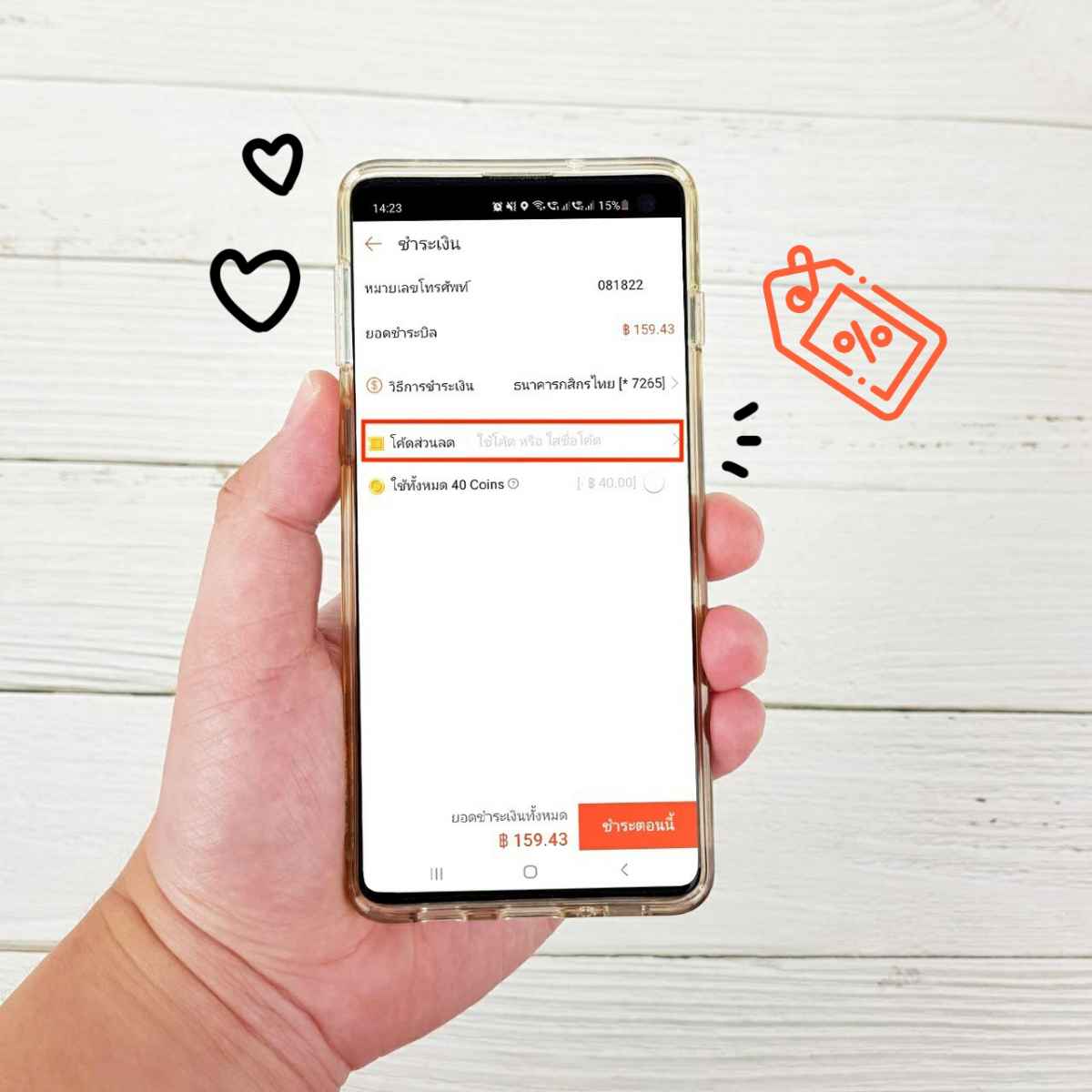 9. เลือกโค้ดส่วนลดก่อนทำรายการจ่ายบิล