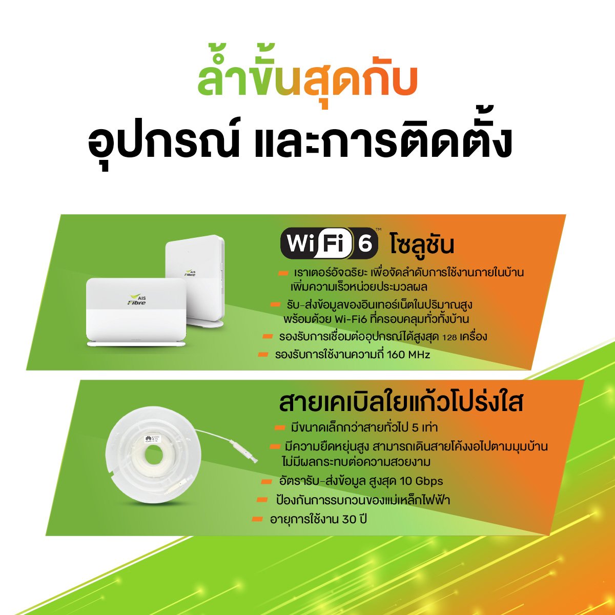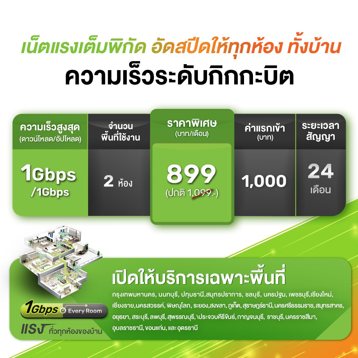 นวัตกรรมใหม่ บริการโครงข่ายอินเทอร์เน็ตภายในบ้าน (Home Network Solution) เชื่อมโยงอุปกรณ์กระจายสัญญาณและสร้างโครงข่ายอินเทอร์เน็ตความเร็วสูงระดับ Gigabit ในทุกชั้น ทุกพื้นที่ ทุกห้อง (สูงสุด 8 ห้อง) เชื่อมต่อสัญญาณไวไฟภายในบ้านชนิดไร้รอยต่อ (Seamless Roaming) ในโครงข่ายเดียวกัน