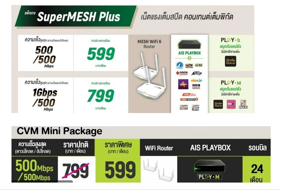 เราเตอร์ MESH WiFi 2 ตัว มูลค่า 5,000 บาท* รองรับการส่งสัญญาณ ผ่าน LAN ได้สูงสุด 1 Gbps และผ่าน WiFi ได้สูงสุด 1 Gbps (เฉพาะมือถือและคอมพิวเตอร์รุ่นที่รองรับ) และเชื่อมสัญญาณ MESH WiFi ครอบคลุมทั่วบ้าน